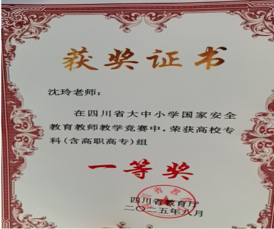 据悉,全省教育系统第十个“全民国家安全教育日”系列活动组织开展3个系列竞赛,覆盖了大中小学教师、学生、安保干部等群体。活动自今年4月启动,吸引全省21个市州,141所高校2万余名师生参赛,辐射带动全省50余万师生参与国家安全教育,历经多阶段层层遴选,评选出235位获奖选手。其中,沈玲老师凭借扎实的理论功底、精湛的教学技艺和出色的现场应变能力,从省级复赛(集中网络评审)到省级决赛(现场评审),最终斩获四川省大中小学国家安全教育教师教学竞赛高校专科(含高职高专)组一等奖第一名,我校获得高校优秀组织奖。